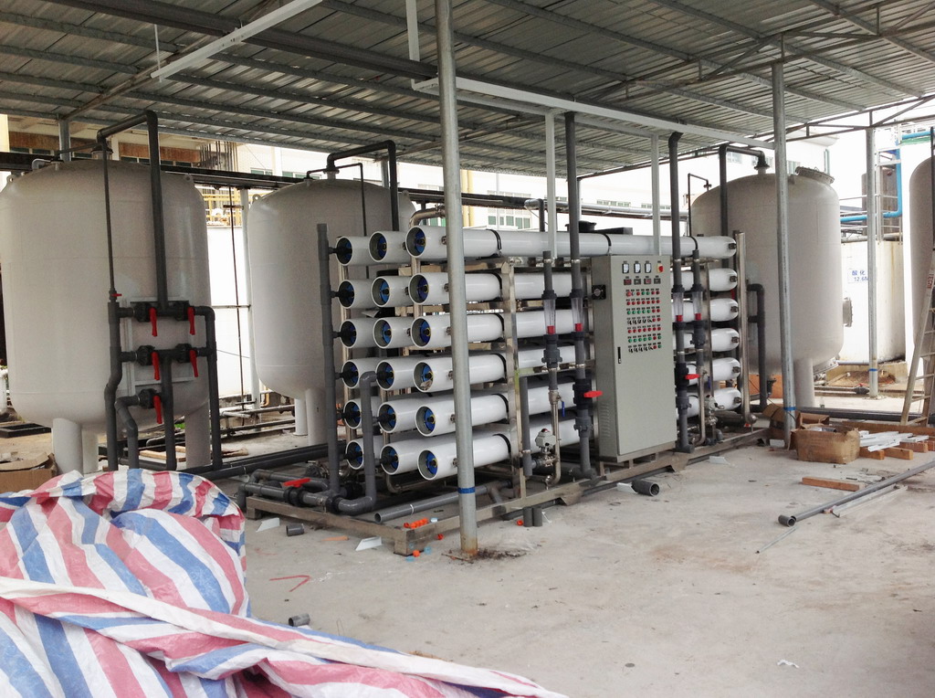 设备流程:原水→多介质过滤器→活性炭过滤器→精密过滤器→中间水箱→一级反渗透设备→ →纯水储水箱 →纯水增压泵→混床系统→