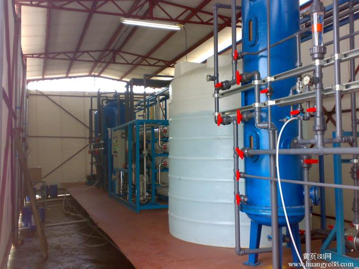 设备流程:原水→多介质过滤器→活性炭过滤器→精密过滤器→中间水箱→一级反渗透设备→纯水储水箱 →纯水增压泵→