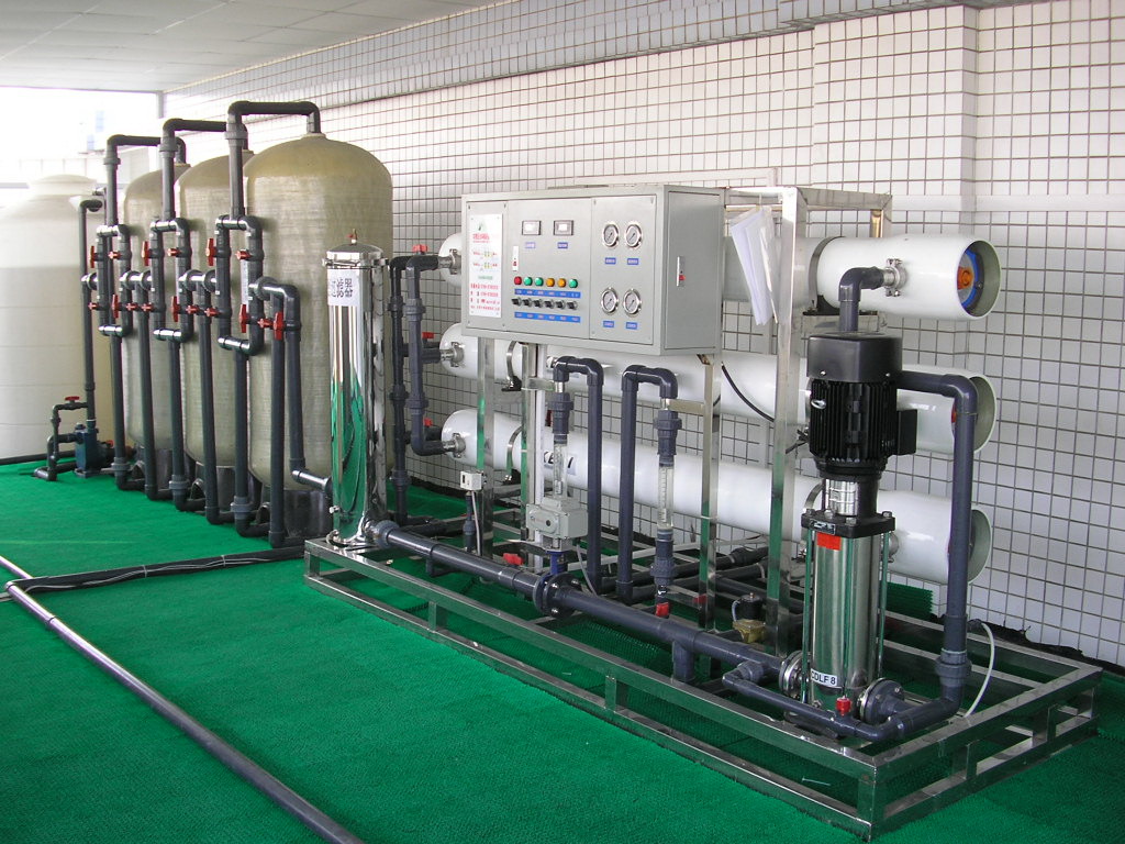 设备简介:6T/H RO反渗透纯水系统。 行业用途:铝质氧化行业表面清洗用水 产水水质:小于5μs/cm 设备流程:原水→多介质过滤器→活性炭过滤器→精密过滤器→中间水箱→反渗透纯水设备→ 纯水储水箱→纯水泵→后置保安过滤器→用水点